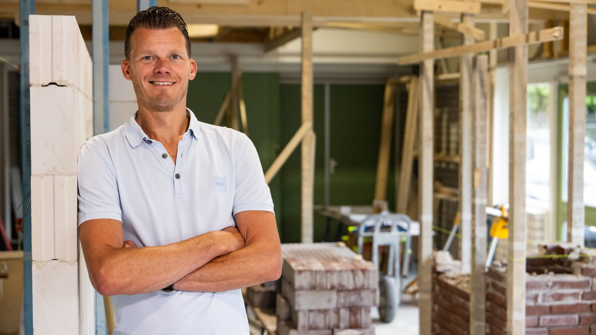 Wouter de Vries weet hoe het is om te leren met je handen. Hij begon ooit als leerling bij Bouwmensen Apeldoorn, werkte jarenlang als timmerman en stond vijf jaar als instructeur in de werkplaats. Nu is hij leerlingbegeleider: de schakel tussen leerling, school en leerbedrijf. “Ik ben echt van de praktijk, net als veel van onze leerlingen”.