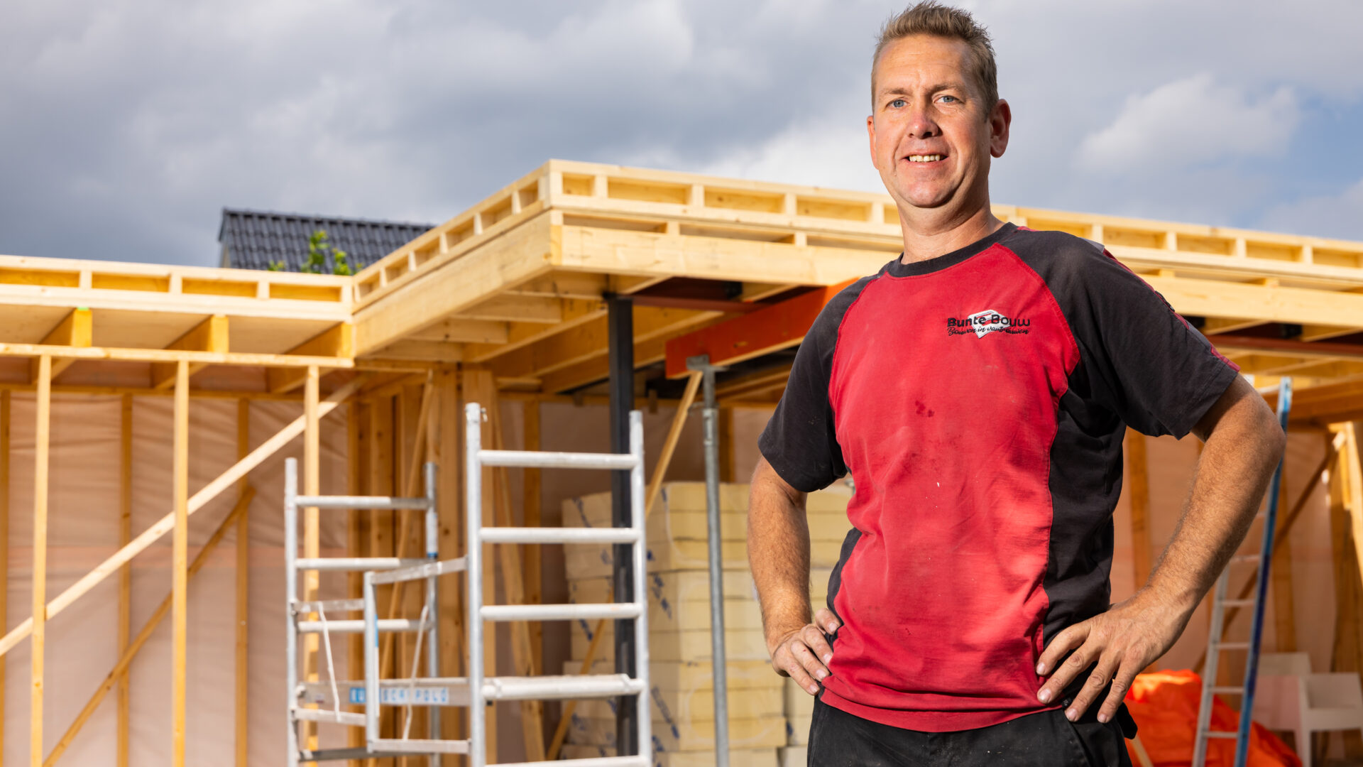 Sjoerd Bunte begon ooit als leerling timmerman bij Bouwmensen Apeldoorn. Inmiddels werkt hij als zzp’er, maar de band is gebleven. Regelmatig springt hij bij als invalinstructeur in de werkplaats en neemt hij leerlingen mee op de bouw. Zo laat hij zien dat ook een eenmanszaak een uitstekend leerwerkbedrijf kan zijn. “Ik vind het hartstikke mooi om jongeren het vak te leren”.