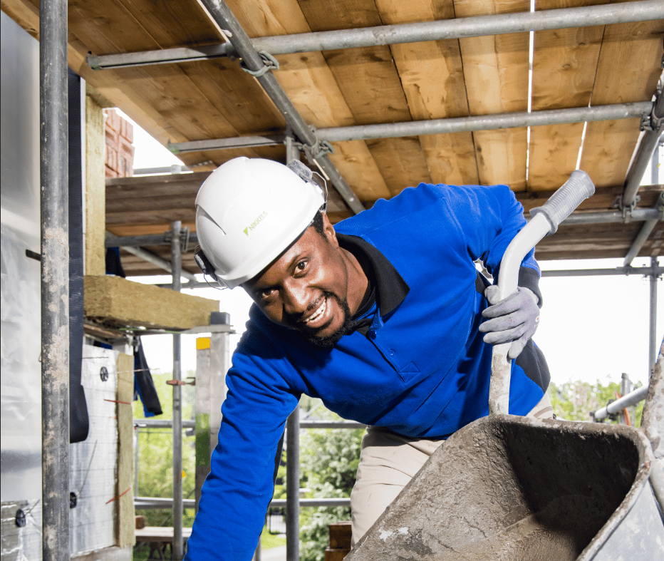 Mulamfu was in zijn geboorteland reporter maar omdat de vrije pers in Zambia onder druk stond, ging hij iets anders doen. ‘’Ik ging auto onderdelen verkopen. Toen ik in Nederland kwam, moest ik een vak kiezen. Ik dacht dat de bouw wel iets voor mij zou zijn en ik meldde me uit eigen beweging aan bij Bouwmensen. Ik heb daar veel verschillende dingen kunnen leren. Timmeren bijvoorbeeld, maar mijn passie is toch wel metselen. Dat vind ik het mooiste. ‘’ Mulamfu, vader van drie kinderen, vindt dat de zwaarte van het werk op de bouw wel meevalt. ‘’Natuurlijk moet je wel eens iets zwaars sjouwen, maar moderne hijs- en hefmiddelen en andere voorzieningen maken de arbeidsomstandigheden steeds beter.’’ Hoe ziet Mulamfu zijn toekomst? ‘’Ik wil graag een goede metselaar zijn en er alles aan doen om kwaliteit te leveren.